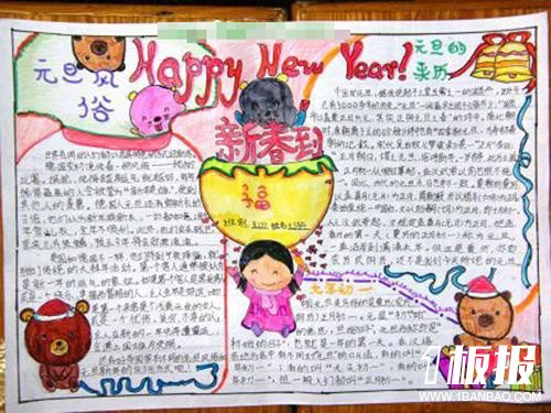 这幅迎新年手抄报制作精美,版头“happy new year”非常抢眼,主题突出,充满节日氛围,非常值得借鉴。