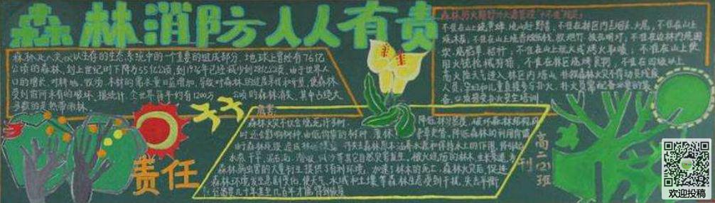 人们一个不经意的举动,就可以给森林带来灭顶之灾,给人类自己带来不尽的伤痛!可以这样说,是人们薄弱的防火意识导致了一次次惨痛的后果!人类的祖先是从森林中站立起来走向世界的。森林是人类生存环境不可缺少的组成部分。保护森林,是振兴经济,造福子孙,有益当代的千秋大业。下面由5068儿童网小编给大家带来有关森林防火的黑板报。