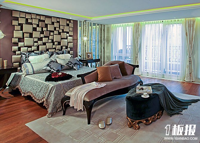 标签:无人近景室内样板房中式房间天花板家庭生活横构图室内空间室内装饰装修人造物家具华贵装饰家装实景住房住房内部白昼现代样板房内部壁灯床上用品美人榻贵妃椅床前凳睡衣装饰画实木地板相框工艺品装饰品落地窗窗帘地毯