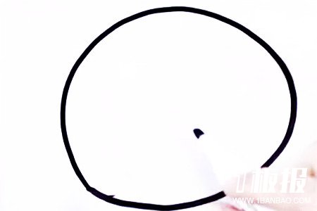 首先我们先画一个圆形的螃蟹壳,然后在里头用一对相反的括号画出蟹壳上的纹路。如图