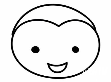 首先我们先在画面中央画出一个心形,然后再用两个黑点画出蜜蜂的眼睛和嘴巴,最后用一条圆形画出脑袋的轮廓。