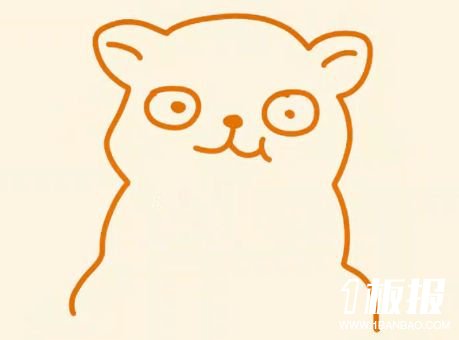 首先我们先画一个半圆形的脑门,然后在两端画上三角形的耳朵。接着我们在下方画出一双圆圆的大眼睛。