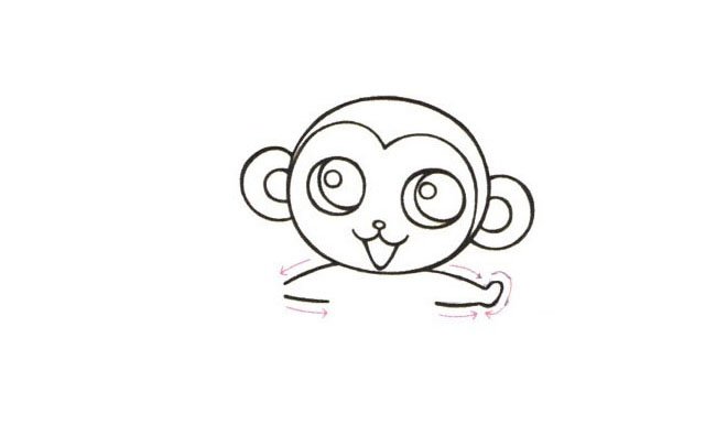 接着我们画出小猴子的脸部轮廓,然后画出身体和双手。如下图
