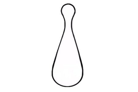 首先在画面中间位置画出一个像瓶子一样的图案,如图画好后,在上方头部画出孔雀的眼睛和嘴巴