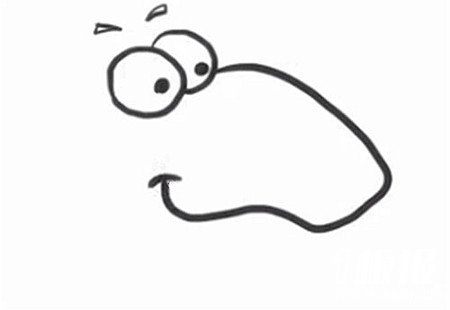 首先我们先恐龙大大的眼睛和上翘的眉毛,然后画出它的上颚。