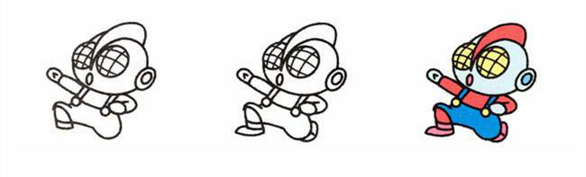 继续延伸线条,画出奥特曼的腿部及脚部,画好后整理画面为奥特曼涂上颜色就完成了~