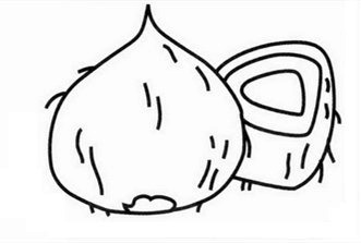在白纸上画出椰子的基本外形,并且在靠上的位置内划伤两个椭圆,如图