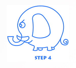 在椭圆的中间画出大大的小象耳朵,然后把尾巴添加上,以及下方另外两只脚也要添上,最后把多余的辅助线擦掉。