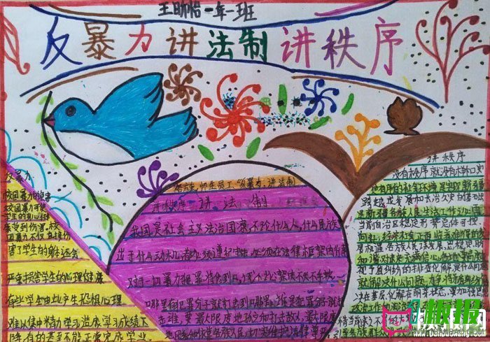 同学们,你们知道吗?学习反恐防暴知识,提高自我防范能力是非常重要的,学校一定要加强反恐演练,提高安全意识,政府要坚决打击恐怖暴力,努力建设平安家园。下面板报网小编为您带来好看的安全教育手抄报图片,反暴力讲法制,希望你们喜欢!