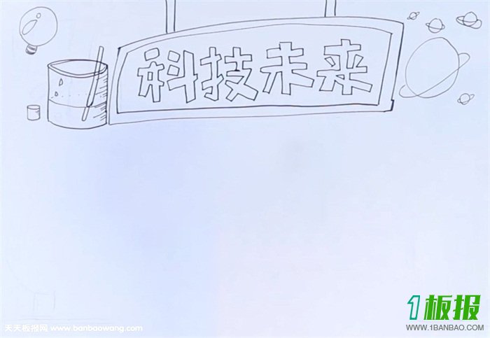 5、最后在边框空白处画上文字栏,简单的手抄报就完成了。科技未来手抄报怎么画