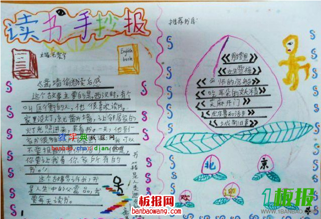 读书的手抄报资料:我们在进行阅读时,会潜意识地将自己的思想和行为与书中所描述的人物形象进行比较,小学生读书的手抄报无形中就提高了自身的思想意识和道德素质。