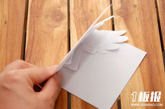 把剪纸天使粘贴上去。