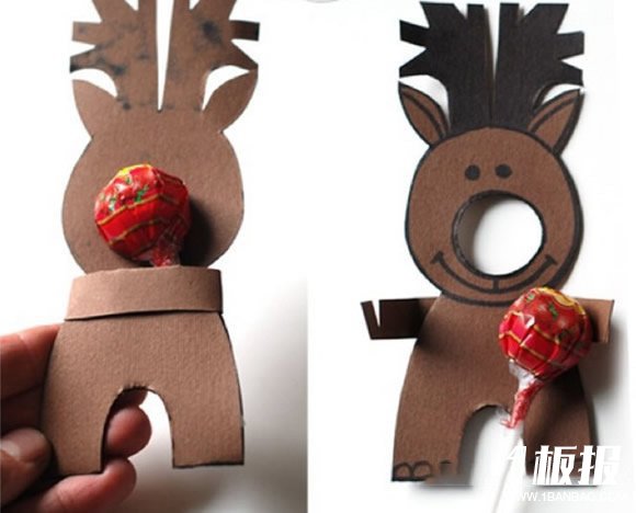 准备好卡纸和棒棒糖,跟着上面的图解做做看吧~