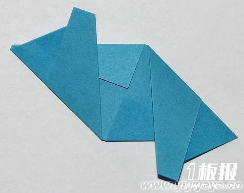3、折完后翻转过来,将角朝中线按上图的方向折叠。