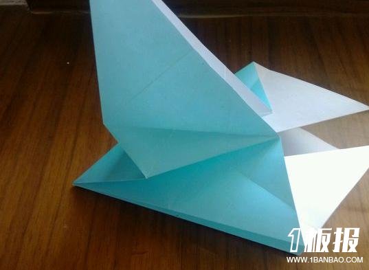 7、四个全部折好,然后把右面的角翻过来,如图。