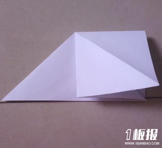 先把上面的角展开同时向右折,折成正方形。
