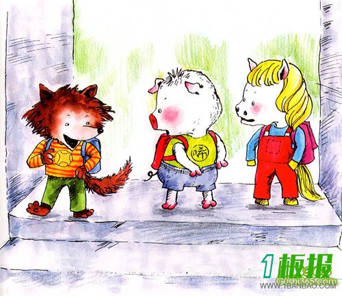 第二天一早,小狐狸又来到了小灰猫的楼下叫他一起去上学,并大声喊:记住洗完脸再下来。