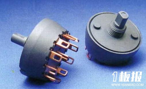 顾名思义,旋转开关是以旋转手柄来控制主触点通断的一种开关。旋转开关的结构形式也有两种,分别是单极单位结构和多极多位结构。单极单位旋转开关在应用中常与转轴式电位器共同使用,而多极多位旋转开关多用于工作状态线路的切换。